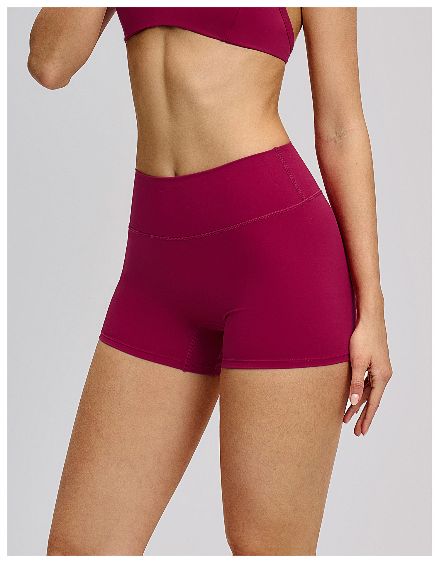 High Waisted Yoga Shorts for Women, Tummy Control Soft Athletic Shorts for Fitness, Wine Red